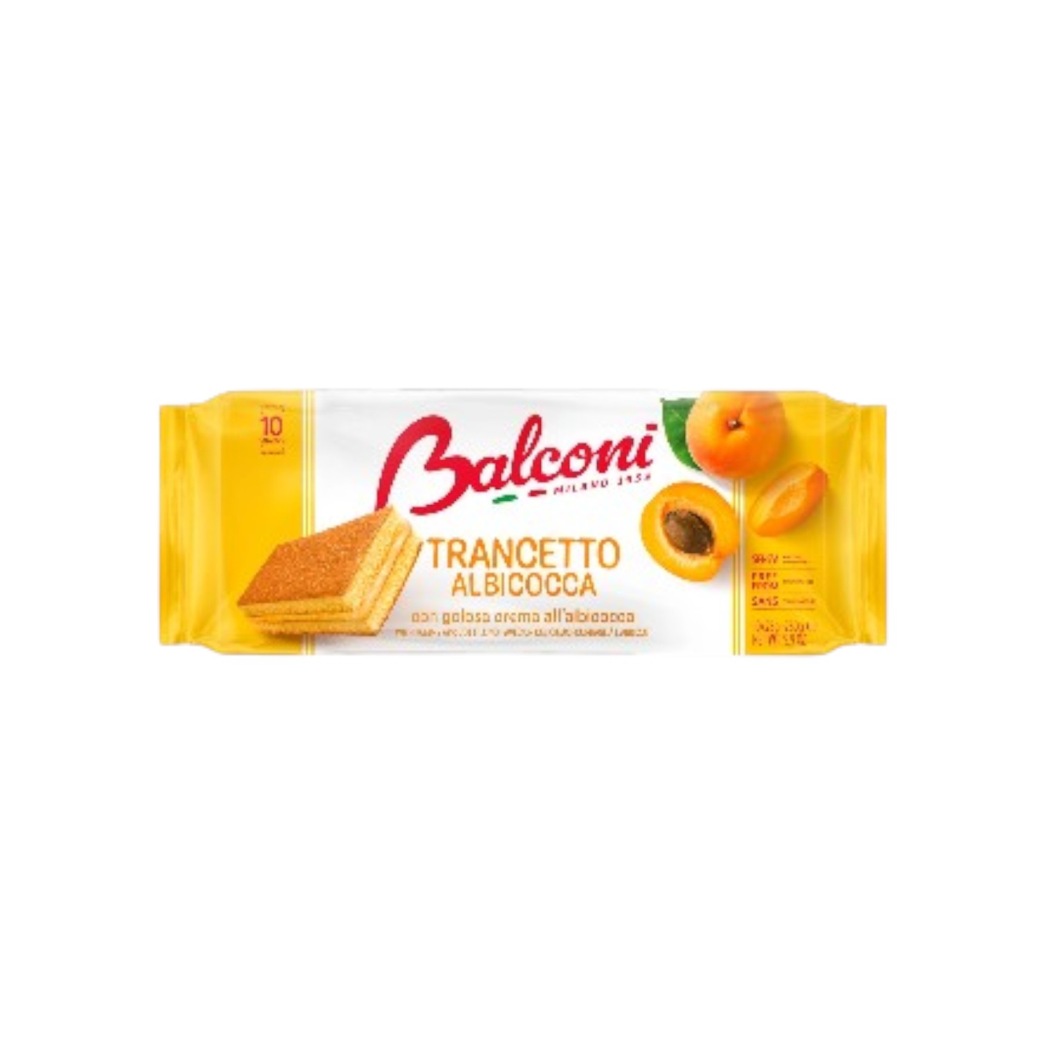 QUEQUE ESPONJOSO BALCONI RELLENO DE CREMA DE ALBARICOQUE 10 UND 280.00 G