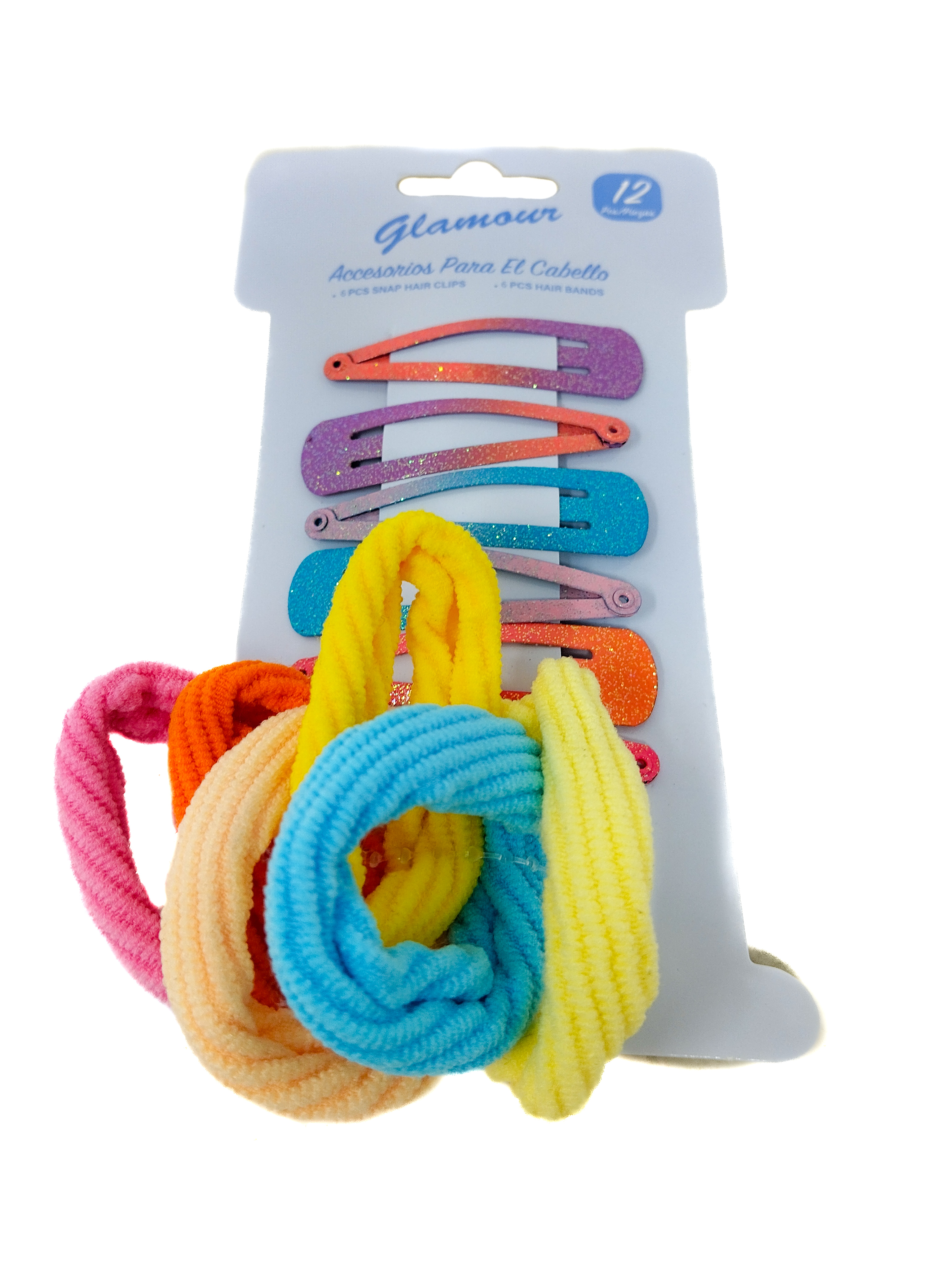 SET PARA CABELLO GLAMOUR 12 UND - COLAS ELÁSTICAS 6 UND + PRENSAS DE METAL 6 UND